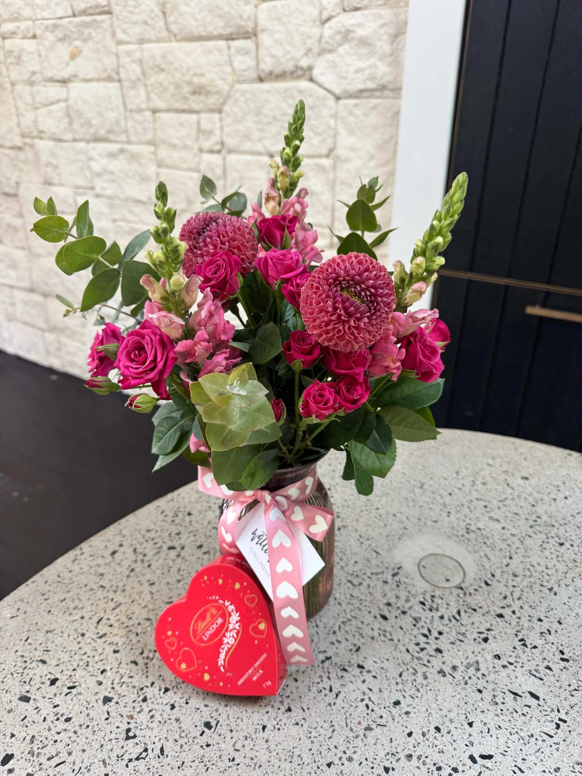 Shop Categories: Select a Category Potted Plants Flower Arrangements Hampers Wreaths Event Flowers Shop Potted Plants | Flower Arrangements | Hampers | Wreaths | Event Flowers | ‘Be my Valentine’ Vase + choccie $100.00 Mini Orchids in a candle vase $130.00 ‘Feel the love’, Fill the home with flowers $130.00 Floral gift card $10.00 ‘Be my Lover!’ Hamper $150.00 Medium Floral arrangement from $120.00 Large floral arrangement from $170.00 Milk Jar Arrangements from $180.00 Formal corsage / Buttonhole - new product alert from $20.00